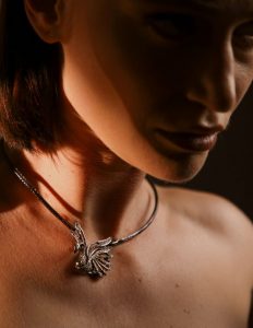 A designer criou uma coleção única e completa esculpida em ouro 18K. Choker, colar, pulseira, brinco, anéis, bracelete e broche foram produzidos manualmente, alguns com cravejamento em brilhantes e diamantes. Há também opção de algumas peças em prata sob encomenda.