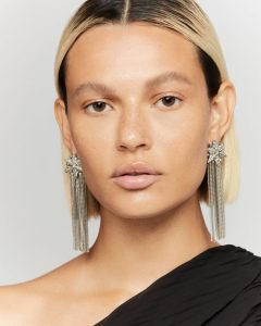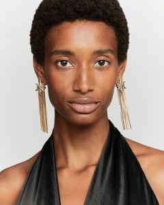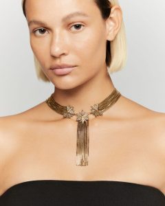 O metal e a geometria se unem às raras peças da coleção com influência na clássica estrela. A franja longa em banho ouro vintage e prata boho expressa ousadia e impacto e está presente no maxi brinco, na pulseira com estrela dupla e no colar. Os cristais sempre presentes no DNA da marca, completam a linguagem lúdica e simbólica.