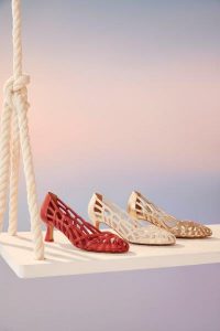 A ráfia, que aparece como protagonista de um dos episódios, serve como base para sandálias, mocassins, mules e bolsas. Outro ponto alto da coleção é a estampa que remete ao tressê e traz um transpassado manual em cores quentes finalizada com couro Sela, que dá vida a papetes, rasteirinhas, bolsas e sandálias. Para finalizar, oito modelos de bolsas também com tressê e trabalho manual na alça.