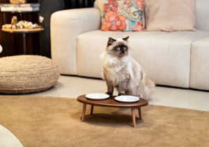 Comedouro Elevado – Pesquisas apontam que os gatos gostam de se alimentar próximos aos seus donos. Atenta às questões comportamentais dos felinos, a OGato Design projetou uma peça cujo design compõe com a decoração da casa e ainda preserva a saúde dos pets proporcionando uma alimentação ergonômica.