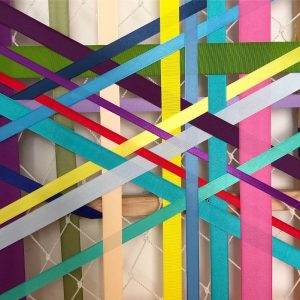 A série “Bordados” é original da artista e são 100% inéditas no mundo da arte. Além de serem obras que enchem os olhos, o conceito dos painéis produzidos com fitas de cetim entrelaçadas é extremamente interessante e atraente. A inspiração surgiu durante o isolamento, momento em que Taly sentiu a necessidade de gritar ao mundo um pouco de esperança.