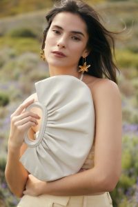 Além de peças de roupas, Atelier traz também os acessórios para compor os looks, com sandálias que exploram as amarrações, os saltos blocados em madeira e o courino colorido e bolsas trazendo formatos orgânicos e com grande inspiração floral. Entre os acessórios, pulseiras, colares e brincos também ganham destaque na coleção, trazendo formas florais em tons de dourado para contrastar com o look e reiterar a delicadeza do lançamento.