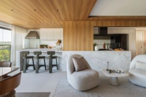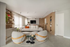 Para o escritório TT Interiores, comandado pelas sócias Tássia e Thaisa Pereira, essa nova ideia de luxo está diretamente ligada à experiência de morar bem no dia a dia. O projeto nasce da observação da rotina dos moradores e da escolha cuidadosa de materiais, proporções e luz. “Luxo é viver em um ambiente que acolhe, que funciona e que acompanha sua rotina. Está nos detalhes, na iluminação certa, nos materiais que envelhecem bem e no conforto que se percebe com o tempo”, concluem.