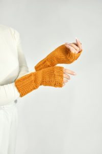 Luvas de tricô do kit Made By You. Créditos: Divulgação.