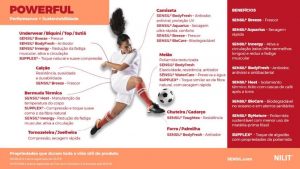 A Nilit, líder global na produção de poliamida 6.6, atua há cerca de 50 anos na produção de fios inteligentes, e possui uma linha completa de vestuário esportivo produzida com a marca SENSIL®, que atende diretamente às questões ambientais mais urgentes da indústria de vestuário e também a necessidade de conforto, performance e bem-estar dos consumidores. As peças têm aparência e toques suaves, resistentes e duráveis, e ainda conservam o aspecto de novas mesmo após muito tempo de uso e lavagens.