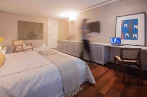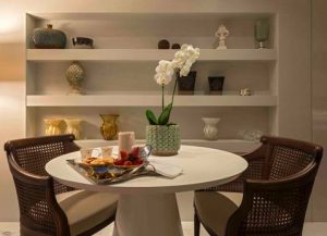 Além de conforto absoluto, quando as pessoas se inspiram em quartos de hotel, a multifuncionalidade é um grande atrativo. “Ter uma antessala, um espaço para trabalhar, para tomar o café da manhã, para ler ou até mesmo para receber uma amiga mais íntima é algo que todos apreciam”, acrescenta Estela.
