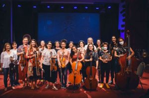 Primeira orquestra formada só por mulheres no Brasil, a Ladies Ensemble atua desde 2009 e reúne musicistas de diferentes idades, vertentes, influências e inspirações. A orquestra é expoente em um universo com diminuta presença feminina em posições de liderança e mostra que mulheres podem ser protagonistas em uma orquestra.