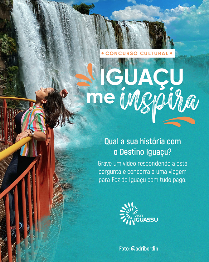 Sabe aquela viagem que não sai da memória? Aquela que você sonha em repetir? Se ela é com Foz do Iguaçu, o Concurso Cultural “IGUAÇU ME INSPIRA – QUAL A SUA HISTÓRIA?”, vai te dar a oportunidade de viver novamente essa experiência. Para participar, basta verificar em que categoria sua viagem se encaixa, casal, amigos ou família, gravar um vídeo respondendo à pergunta: “QUAL A SUA HISTÓRIA COM O DESTINO FOZ DO IGUAÇU?”.