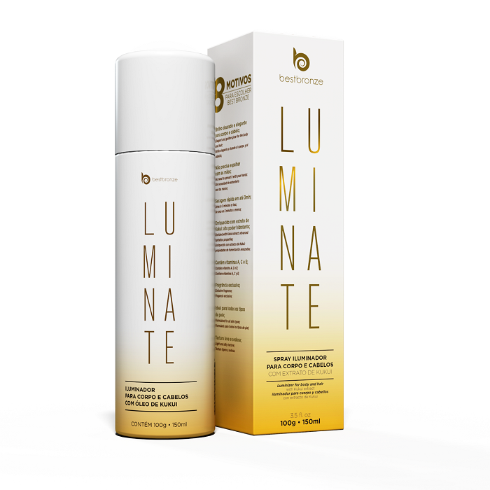 Com a ação do Óleo de Kukui, o Luminate da Best Bronze, além de oferecer brilho dourado para o corpo e os fios, promove hidratação intensa, nutrição, cuidados anti-aging e anti-inflamatórios, o que reforça o objetivo da marca de unir beleza e tratamento. Apesar de possuir o óleo na composição, o produto deixa a pele macia, suave e com toque seco. No cabelo, ele ainda ajuda a fixar penteado ou escova delicadamente.