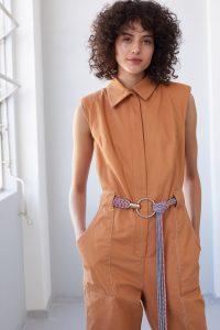 Mergulhar na própria história é suspender o tempo, cada vez mais acelerado. E assim os detalhes manuais, sempre presentes na história da marca, surgem não só nas roupas, mas também nos complementos que as acompanham. O macramê, técnica artesanal que trama fios em laços atados, dá forma às saias mídi feitas manualmente, uma a uma. Rolotês alinhavados pontuam as peças de tela, como um acabamento cuidadoso em alças, decotes e nas saias mídi. Além do arremate das peças com argolas, mosquetões e outros detalhes de metal, que lapidam roupas e acessórios.