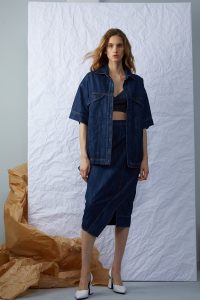 O tecido plano permanece em sintonia com o tricô, trazendo para o mix peças que também são parte do DNA Coven, mas que trabalham o shape de linhas limpas mais afastado do corpo. A tricoline listrada pespontada em chemises e camisas com volumes nas mangas trazem o cuidado manual. Se destacam também macacões e modelagens como cargo e clochard, em sarja e também em jeans, linha que é realçada também com jaquetas, saias e blusas.