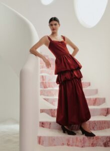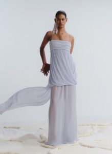 Nesta etapa, a coleção revela um jogo de contrastes, onde a cintura marcada encontra o volume do balonê, criando novas proporções. Transparências leves e estratégicas adicionam camadas de profundidade às composições, com fendas precisas e rendas que aparecem de maneira sutil e inesperada. Com o mantra, “a ofício da forma”, a marca apresenta neste lançamento um trabalho detalhado contemplando a dualidade entre delicadeza e estruturar onde tecidos encorpados dialogam com materiais etéreos