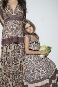 O conceito é explorado através de uma releitura lúdica que carrega a essência da coleção especialmente para as pequenas. Detalhes florais nas estampas e nos bordados em ponto cruz são aplicados em tecidos leves e modelagens confortáveis que permitem o movimento. Da ligação genuína com a Mãe-Terra, derivam o algodão, lã, seda e linho em tons exclusivos como o rosa buquê, o vermelho envy, o azul sonho e o verde sage que permeiam por toda a coleção.