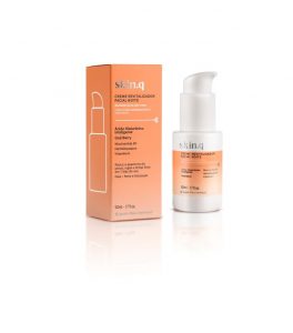O Skin.q Creme Revitalizante Facial Noite é um creme fluído de textura leve, refrescante e com rápida absorção. Seus ativos aceleram a regeneração celular e restauram a vitalidade da pele, diminuindo o aspecto de poros, rugas e linhas de expressão. Tudo isso enquanto dorme. A formulação do creme noturno traz ativos poderosos que combinam tecnologia de ponta e o melhor da natureza: ácido hialurônico, goji berry, niacinamida, hemiesqualano e vitamina E. Ao dormir, a pele se recupera da rotina do dia a dia. E, após um boost do creme revitalizador, você acorda com a pele regenerada.