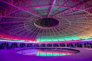 Amplas piscinas propiciam a sensação de exclusividade. Sendo que a aquecida é uma das maiores cobertas do país e tem cromoterapia que relaxa o hóspede durante o banho.