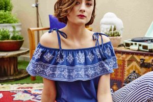 Peças inteiras, como os vestidos e os macaquinhos, ganham destaque na coleção, assim com as peças listradas e estampadas em branco e azul, que aparecem como aposta e podem ser combinadas com os famosos jeans da marca.