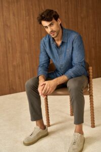 Nesta coleção, o jeans ganha um olhar atualizado com desbotamento vintage, lavanderia amaciada e pespontos marcados, que evidenciam a estética refinada da alfaiataria casual. As modelagens estruturadas garantem um caimento impecável, enquanto a cartela de cores – com tons terrosos, ocre e vermelhos – reforça o mood super feminino.