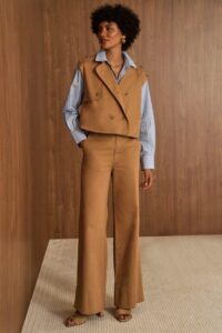 Ideal para composições que transitam do dia para a noite, cada peça equilibra sofisticação e praticidade em um visual easy chic. Seja no jeans de corte preciso ou em blazers e calças que traduzem o novo essencial, a coleção destaca a moda atemporal e atual.