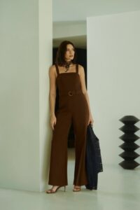 Para os amantes do jeans 100% algodão, a coleção também traz opções com acabamento tradicional e lavagem azul médio, um tom atemporal que se mantém relevante entre as trocas de estação. Já a sarja marrom — a cor-chave do momento — aparece em peças encorpadas com corte alfaiatado, perfeitas para criar composições que transitam entre o casual e o urbano chic.