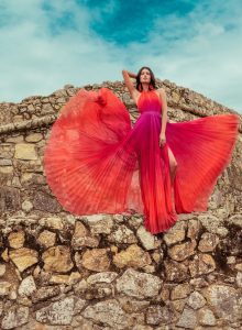 As cores, os ritmos e as sensações da tradição inca são trazidas em formas fluídas, tecidos esvoaçantes e texturas sensoriais em uma coleção que exala latinidade.