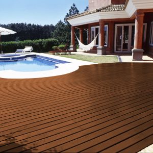 Como o deck de piscina está sob constante ação da água e da luz do sol, a dica é utilizar um stain específico para decks, produto capaz de penetrar nos veios da madeira, protegendo-a ao mesmo tempo em que mantém os seus movimentos naturais, o que inibe o aparecimento de trincas.