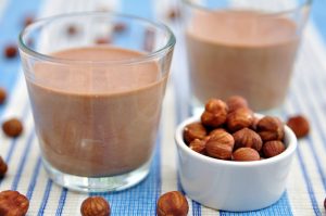Coloque em uma panela o cacau, o creme de avelã com cacau e o leite. Leve ao fogo e mexa até conseguir uma mistura homogênea. Deixe um tempo na geladeira.