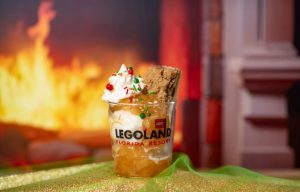 - Aqueça-se com o Warm Apple Wishes Blondie Sundae, um sorvete de baunilha servido com maçãs quentes, chantilly e calda de caramelo, decorado com flocos natalinos em uma caneca de lembrança do LEGOLAND Florida.