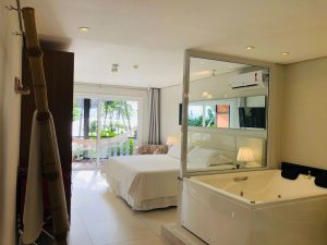 No apartamento Pacuíba, por exemplo, exclusiva para casais, os hóspedes podem desfrutar da mega hidromassagem dupla com direito a banho de sais para que o relaxamento seja completo e revigorante. A habitação, que possui 35 m2,, é equipada com Smart TV 55” com canais a cabo e streaming, frigobar, cofre e ar climatizado. Toda sofisticação e bom gosto são traduzidos por meio dos amenities da francesa L´Occitane e enxovais Buddemeyer.