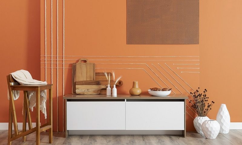 Com uma pegada alegre, colorida e afetuosa, o designer projetou o ambiente na cor laranja. Segundo a cromoterapia, estudo das cores, o laranja é ideal para estimular o físico e o mental, pois alarga a mente e abre-a para novas ideias. Entre os itens de composição do cenário, Feitosa instalou diversos móveis, como sofá, rack, mesinha lateral e de centro, poltrona, objetos de decoração, e ainda uma área de home office, tudo com capacidade para receber cinco pessoas confortavelmente.