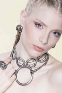 É desenhista e designer industrial de joias desde 1988. A preocupação com a natureza e o meio ambiente trouxe o desafio de criar joias sustentáveis a partir da reciclagem do alumínio. A inspiração vem da Grécia, das deusas gregas que habitam em cada mulher. As estolas são como armaduras, os mantos gregos. Os braceletes são chamados Elos para lembrar que todos fazem parte de algo maior, uma corrente. A coleção Joias Esculturas propõe portar nos ombros e braços elementos que tornem cada mulher única com a ousadia de ser mais do que uma joia, uma obra de arte. @nandagagliastrijoiasesculturas