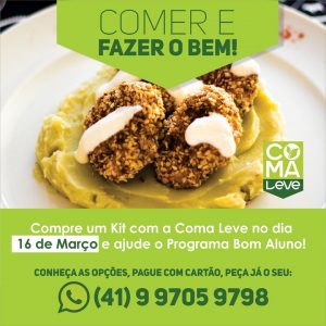 Amanhã, dia 16 de março, a COMA LEVE – empresa de refeições saudáveis e congeladas, de Curitiba (PR), promove pela primeira vez o Dia COMA LEVE Feliz