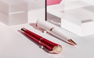A coleção Montblanc Muses celebra a história e o estilo inconfundível de mulheres que marcaram sua época. Montblanc Muses Marilyn Montroe homenageia a musa do cinema em duas versões. A primeira em resina preciosa vermelha, inspirado no tom do batom mais famoso de Marilyn. A segunda em resina preciosa branca com o brilho de pérolas, que também está presente no clipe. O ouro rosé traz um toque de contemporaneidade às peças.
