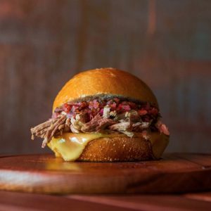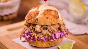 Sanduíche pulled pork e coleslaw