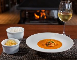 No cardápio, duas opções de antepasto: Patê de tomate seco e alecrim ou Manteiga de limão siciliano (ambos seguem a mesa acompanhados por torradas). Como opções de entradas: Creme de palmito ou Queijo de búfala, Tomate assado com rúcula e azeite de oliva. Prato principal: Estrogonofe de camarão, arroz e palha de mandioca ou Mignon com molho de cogumelos Paris e arroz piamontese coberto com rúcula. Para finalizar: Fondue de doce de leite com frutas (morangos e uvas).
