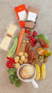 - Higienize, descasque, pique e reserve as frutas.