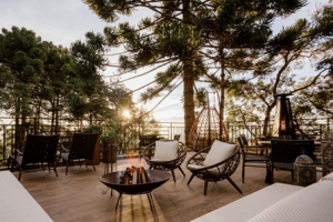 terraço do Kuriuwa Hotel rodeado por natureza deslumbrante (Divulgação/Kuriuwa Hotel)