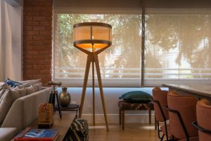 Dica de décor: Para quem busca um efeito decorativo ou escultural, as luminárias de piso são excelentes opções! Por conta disso, o ideal é que a peça fique ao lado de sofás e poltronas para proporcionar um cantinho de descontração com almofadas, ornamentos de parede e outros objetos.