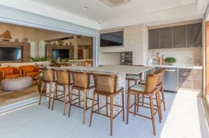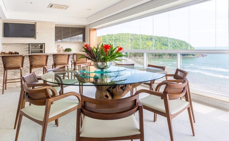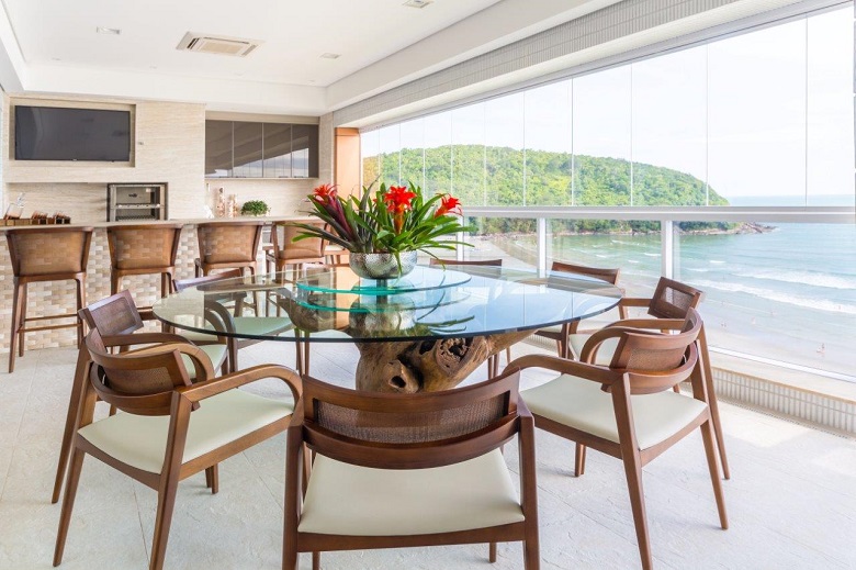 | Integração. Essa é minha terceira dica para você que busca harmonia e aconchego. A varanda gourmet, além de ser grande e receber bem aos convidados, se une de forma sutil ao living.