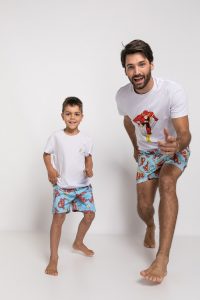 Além das camisetas avulsas de Batman e Mulher-Gato, a coleção traz a camiseta #SuperPai numa estampa exclusiva que vai homenagear nossos heróis de casa.