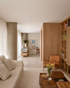 Com 190 m² na Vila Olímpia, este projeto combina madeira Tauari, mármore e peças icônicas do design brasileiro, criando um lar contemporâneo, acolhedor e cheio de personalidade.