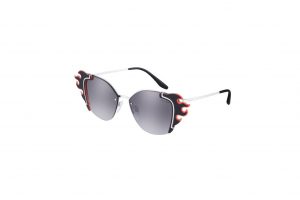 A Prada traz um modelo especial com decorações sofisticadas. A armação produzida em metal apresenta uma estrutura fina e linear, as decorações sofisticadas tomam forma nas vistosas chamas bicolores que emolduram lateralmente a armação frontal, proporcionando um toque divertido e fora do comum.