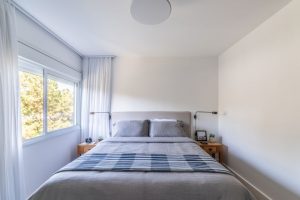 O respeito à proporcionalidade deve conduzir a decisão pela cama. Um dormitório pequeno com uma cama king, por exemplo, pode ocupar uma área preciosa e resultar em uma percepção de ambiente apertado, uma vez que é preciso ter, no mínimo, um espaço de 50 cm no entorno da cama. “Se o sonho de uma cama king não for possível, o estudo do projeto pode nos abrir frente para incluir um modelo queen que, embora um pouco menor, já confere muito mais conforto e espaço que a cama de casal padrão.”, reflete a arquiteta.