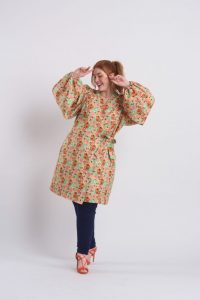 O jaleco foi feito em modelagem mais soltinha, estilo kimono, com amarração lateral, transpasse, mangas super bufantes, ombreiras e punhos de elástico. Confeccionado em tecido que não amassa, a peça de 95% de poliéster e 5% de elastano foi criada para trazer o fashion aliado ao estilo despojado e casual.