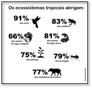 Embora cubram 40% do planeta, os ecossistemas tropicais abrigam mais de três quartos de todas as espécies de animais e plantas