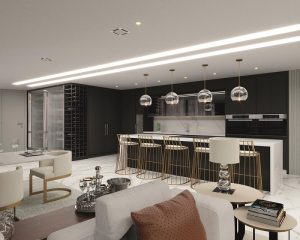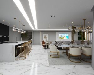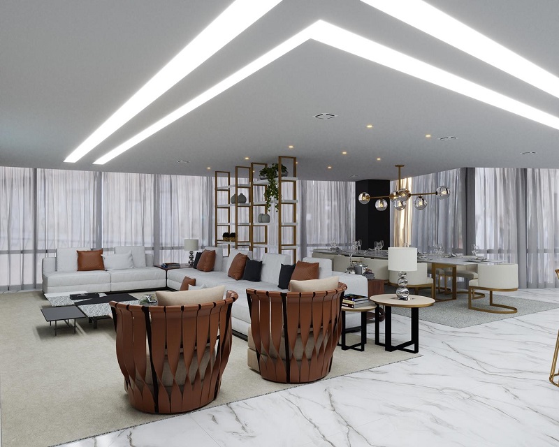 No dia 03 de dezembro acontece o lançamento de mais uma edição do DECORBOOK USA, uma das publicações de maior prestigio nos segmentos de arquitetura e decoração em território norte-americano. A edição 2020/2021 apresenta 31 escritórios de arquitetura e design de interiores, com a publicação dos melhores projetos em diversos estados americanos e conteúdo que serve de inspiração para o público. Entre eles, está a designer de interiores brasileira Flavia Gueiros, estabelecida em Orlando, Florida. Ela apresenta o projeto de uma cobertura em Miami inspirada na arquitetura moderna. Entre os destaques está o living de mármore que incorpora harmoniosamente a TV e a lareira, mantendo uma estética consistente com linhas limpas. A paleta de cores está baseada nos acabamentos em tons de bege, cinza e madeira. A sala de jantar ganhou uma adega elegante, outro destaque do projeto.