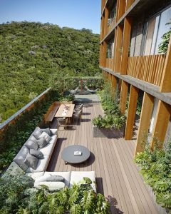 O Infinitá Treehouse, em fase final de construção, se destaca por sua fusão harmoniosa com a natureza. Com apartamentos entre 350 m² e 805 m², o edifício apresenta amplas fachadas de vidro que conectam os moradores diretamente à Mata Atlântica e ao oceano. Além disso, o Infinitá oferece piscinas suspensas e soluções personalizadas de automação. Esse projeto já foi premiado com o Global Architecture & Design Awards 2023 por sua ousadia e inovação arquitetônica, sendo referência de integração entre natureza e tecnologia de ponta.