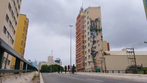 Tem Kobra no Minhocão! O muralista brasileiro iniciou seu primeiro mural na região do Elevado Presidente João Goulart, em um prédio situado à altura da rua Traipu, nº. 500