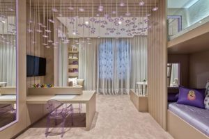 O ambiente das arquitetas Mariana Stockler e Carolina Posanske, o Quarto de Gêmeas, é revestido pelo padrão Glamour, lançamento desse ano. Unicolor com um toque especial. É uma tonalidade que entra na gama dos tons neutros. Cor contemporânea e urbana, com um leve e delicado brilho, dá elegância à composição dos ambientes, trazendo ares sofisticados, com um toque de glamour. Tonalidade perfeita que permite infinitas combinações e compõe com diversas tonalidades de madeirados, tecidos e outros unicolores.
