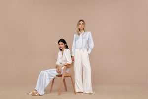 Com peças que unem textura e silhuetas inspiradas na alfaiataria, a coleção imprime o clima da estação por meio de uma cartela de cores fria, trazendo nuances de off white, rosados e o verde musgo em diferentes acabamentos, como os acetinados, plissados e até mesmo nas rendas. Os detalhes da coleção não se prendem apenas aos tecidos, as modelagens também trazem pequenos pontos de sobreposições, mangas longas amplas, amarrações e acabamentos bem trabalhados nas golas de camisas.