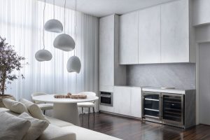 Dentre os ambientes em que a Elettromec entrou como parceira está o Manhattan Loft, assinado pelas arquitetas Juliana Marques e Roberta Lanza, do Griff Arquitetura. O espaço é destinado a um morador que aprecia as tendências contemporâneas sem abrir mão do conforto e funcionalidade e conta com micro-ondas, coifa, forno, dominó, adega e frigobar.